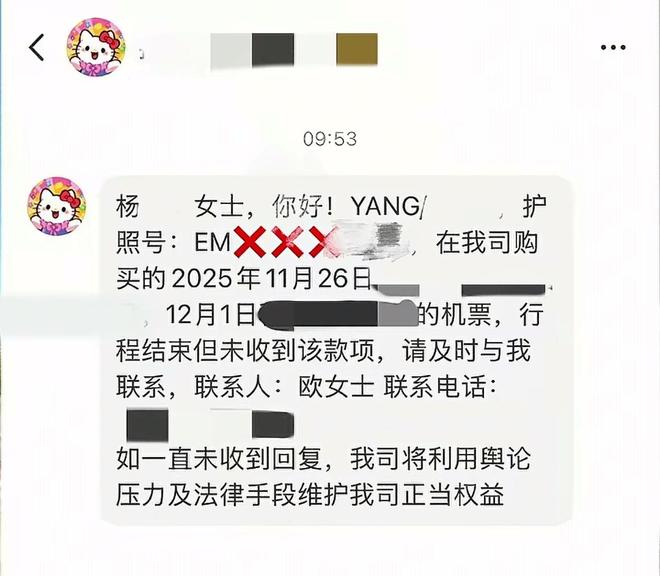 杨天真还称,该私信给出了相应的联系方式,且私信中她的相关信息都是真实的,“如果我不是非常明确地知道,我的机票预订是我们公司有一套支付系统(支付)的,是有概率会相信并且打电话去询问的。”