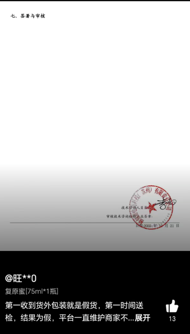然而,这些回应并未平息质疑。消费者手中的“第三方检测报告”与 “官方发货”形成了直接对立,争议的核心转向了这份报告本身的可信度。