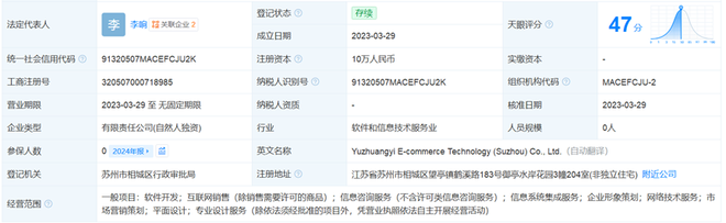 天眼查数据显示,出具报告的柚创壹科技成立于2023年3月29日,其经核准的经营范围主要包括:软件开发、互联网销售(除需许可的商品)、信息咨询服务(不含许可类)、信息系统集成服务、企业形象策划、网络技术服务、市场营销策划、平面设计及专业设计服务等一般项目。该经营范围内未包含“检验检测”相关业务。
