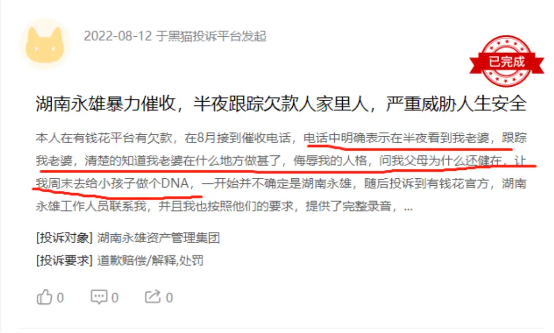 公开报道显示,永雄集团陷入多起员工非法获取公民信息、冒充公检法催收、发送 “死亡倒计时” 短信等“软暴力”纠纷。