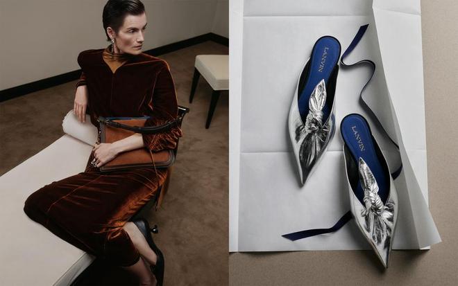 本季设计风格在品牌经典的飘逸剪裁与雕塑质感之间游走。上衣立领被赋以建筑般的硬朗线条,密实的羊绒针织衫与毯式裙装,外搭肌理感外套,呈现当代风格造型。全新款Compagnon手袋已延伸出三种不同的尺寸大小,以及包含鳄鱼压纹和亮面漆皮等多种材质在内的款式供选择。今年早先发布的全新"Lanvin Blue浪凡蓝"也悄然运用于内衬与配饰鞋垫,成为品牌的低调专属标识。