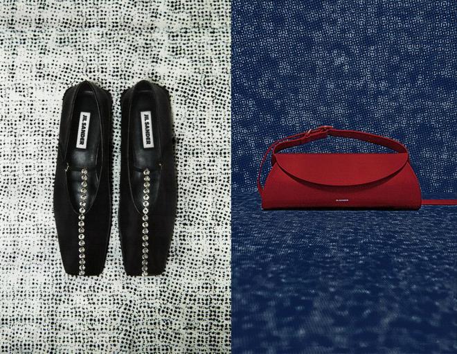 Jil Sander推出臻选假日系列,涵盖典藏香氛以及饰有精致刺绣的芭蕾平底鞋,在舒适度与细节设计之间取得平衡。配饰延续品牌一贯的简洁设计,以克制的廓形与清晰线条呈现利落风格。标志性的Goji Pillow、Tangle与Cannolo手袋延续雕塑感造型,并兼顾多种佩戴与使用方式,可自然适配日常与晚间宴会场景。