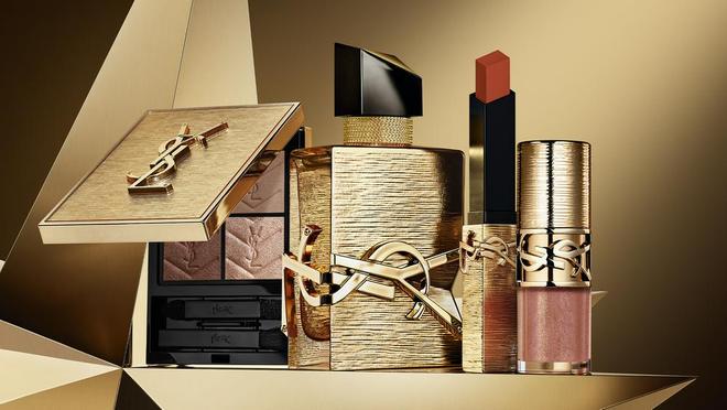 YSL推出奢金节日限定倒计时礼盒,以鎏金拉丝工艺与立体浮雕呈现奢华贵气的氛围,搭配高定旋转开盒设计,集结多款限量彩妆与香氛,帮助打造完整的妆容方案。礼盒内含"奢金"节日限定小金条,搭配特别定制的金色外壳,色号1936呈现琥珀柑茶色调;"奢金"节日限定四色眼影025色号以香槟金棕为基底,融入粉紫亮片,适配多种派对场合;自由之水奢金版香氛采用香草调香气,延续品牌经典气质;同时搭配啵啵唇冻05色号与粉气垫B10色号,完善底妆与唇妆选择,提供多维度的节日造型可能。