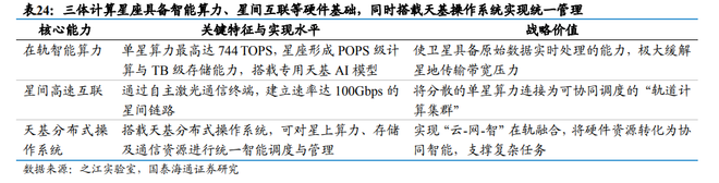 专用计算星座旨在构建纯粹的天基算力网络。以“三体计算星座”为代表,该项目已于2025年5月完成首发12星入轨。其单星算力高达744 TOPS,并通过100Gbps激光链路实现整轨互联,搭载天基分布式操作系统,旨在解决星载高性能计算与星间高速互联难题。