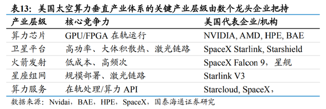 美国已在太空算力领域构建起从底层芯片到顶层服务、由龙头企业主导的垂直整合产业体系。