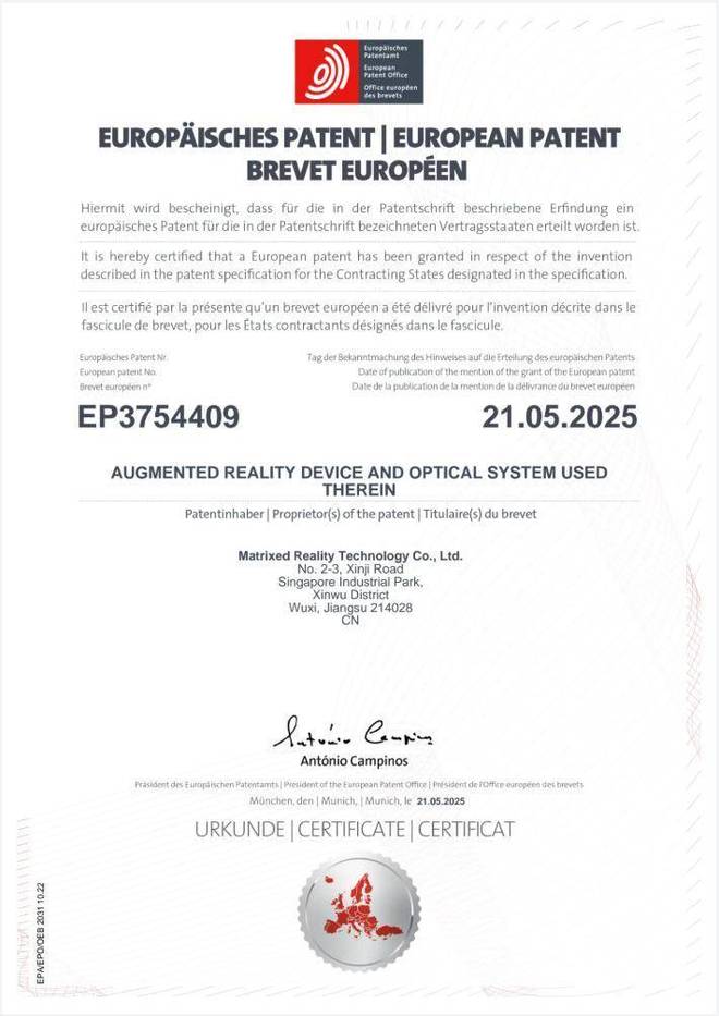 此次诉讼围绕专利EP3754409B1展开。它是XREAL持有的一项光学模组设计专利。虽然只是一项专利,但它却是消费级AR眼镜关键所在。
