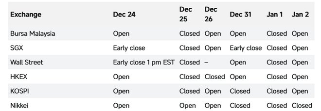 此外,港股、美股、英国、韩股、日股、新加坡、马来西亚也在1月1日休市。日本股市1月2日也休市。