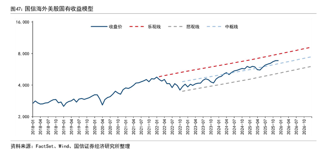 跨过这一调整期后,市场有望进入“N→N+”阶段,迎来类似1999年至2000年初的加速上涨。在基准假设下,2026年末标普500的中性点位有望达到7500点。若市场情绪进一步演绎,2027年末指数甚至可能冲击9600点。在这个过程中,纳斯达克指数预计将维持对标普500的超额收益,到2026年年中可能达到23500点附近,并在随后进一步拉大领先优势。当然,这一路径仍面临美联储货币政策、宏观经济预期及AI技术演进速度等多重不确定性因素的扰动。