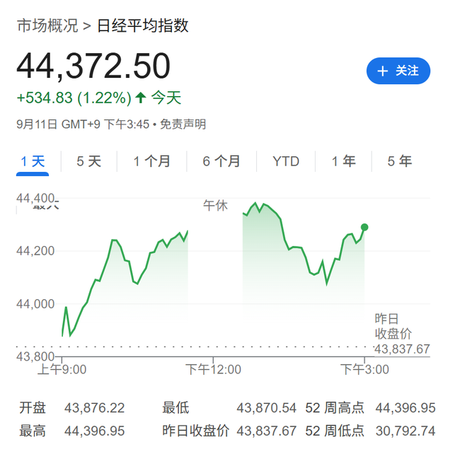 - 日经225指数收盘涨1.2%,报44372.50点日本东证指数收涨0.2%,报3147.76点。韩国首尔综指收盘涨0.9%,报3344.15点。