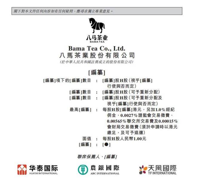 港交所8月28日披露,八马茶业股份有限公司向港交所主板递交上市申请,华泰国际、农银国际、天风国际为联席保荐人。此前,八马茶业已完成港股上市备案,或很快在港交所进行上市聆讯。