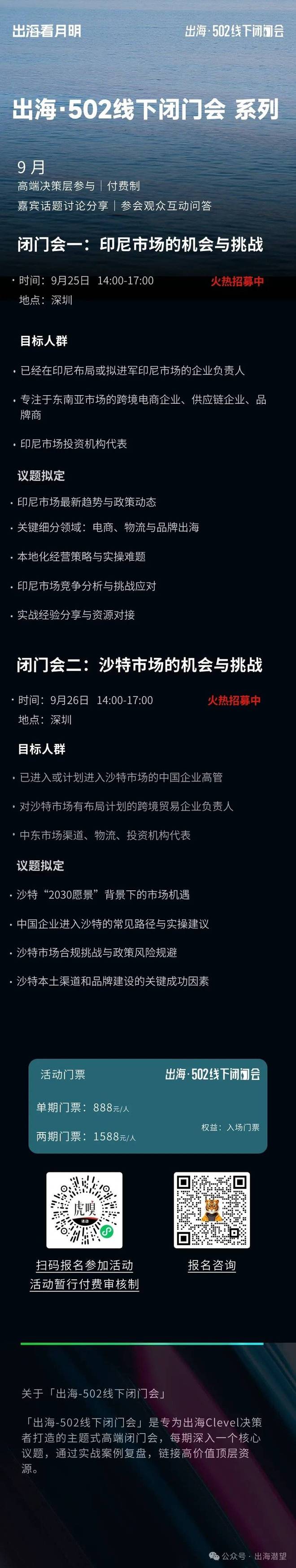 想精准把握印尼、沙特市场的出海命脉?出海・502 线下闭门会 两场活动重磅来袭。