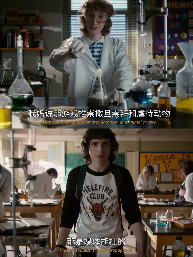 恐惧情绪下的魔幻故事也成为了怪奇物语故事框架的母体。科学恐惧和对未知的恐惧,在剧集中映射成这个充满科学家和药剂,且暗藏颠倒世界大门的霍金斯实验室。