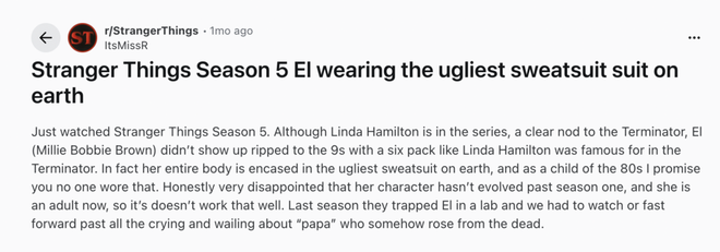 但最终季播出后,怪奇美学可能迎来了一次巨大的信任危机。原因是,女主角之一的Eleven在这一季穿得实在是太难看了。
