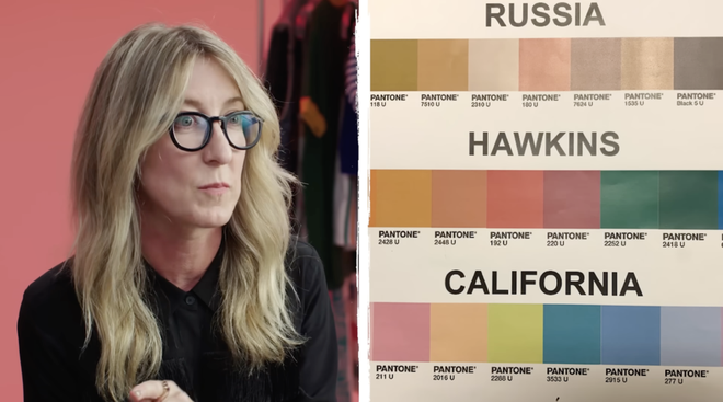 第四季的设计师Amy Parris在后期的节目上解释,为了分辨俄罗斯、霍金斯和加利福尼亚州三个地方,设计组使用了三种不同明度的颜色进行表达。