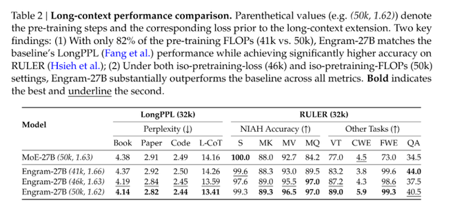 除了通用推理,Engram在长文本(Long Context)领域的表现同样证明了“分工”的价值。