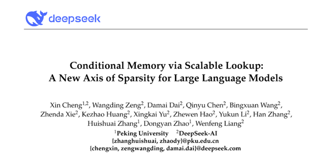 梁文锋新论文揭秘,大模型的字典助力DeepSeek V4智商爆表,计算与记忆分离新突破!
