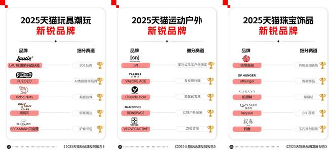 而从入驻开店不满三年、2025年天猫GMV大于1亿元的行业第一“10大新势力品牌”身上,我们可以看出三种主要的“赢家模式”。
