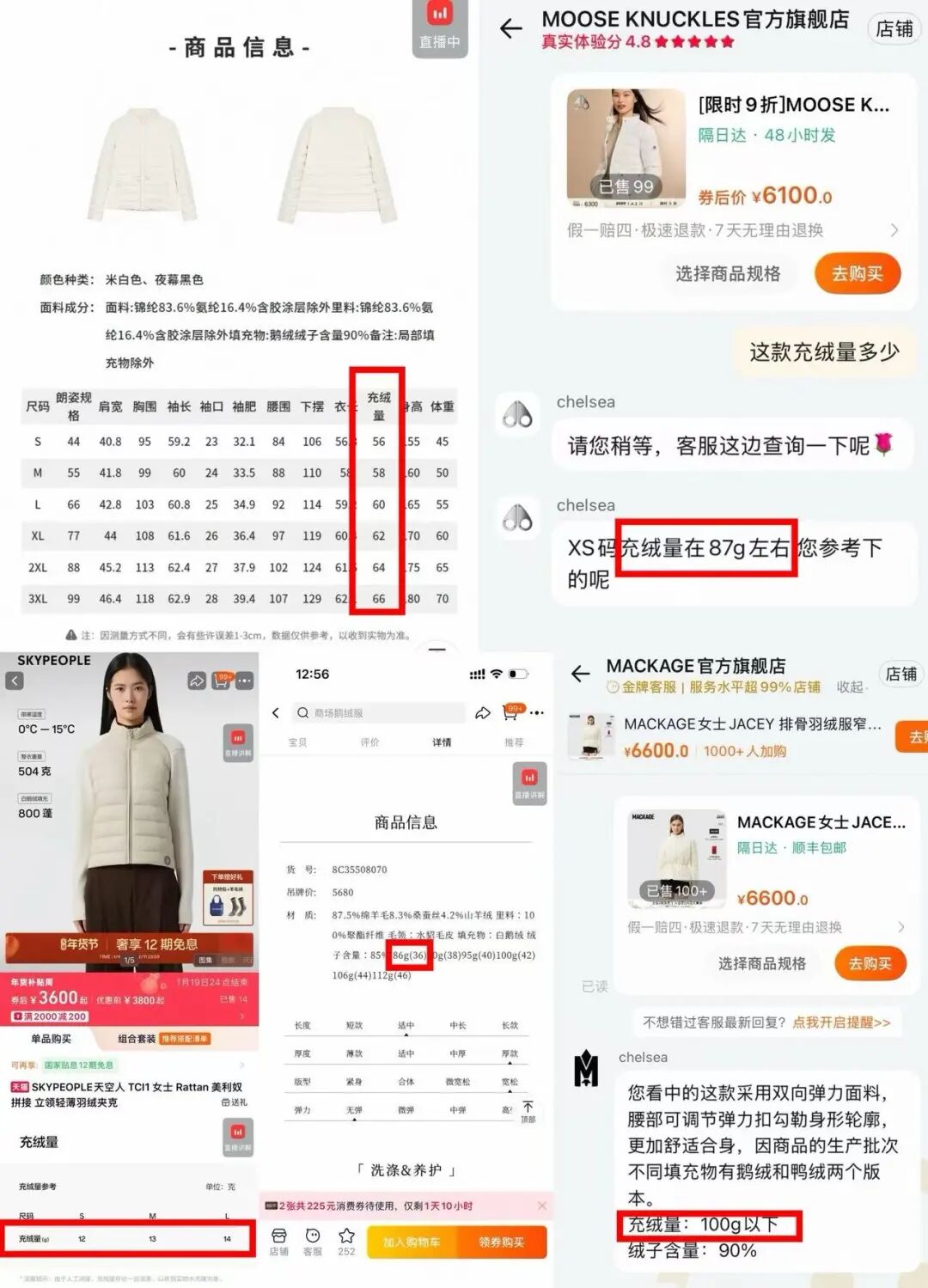 我随机搜索了一下高价格带的轻薄款羽绒服,从商场常见的某国产女装品牌、某国产羽绒服初创品牌,到国际知名的专业羽绒服品牌,标价几千元但充绒量在100克以下的情况,并不少见。