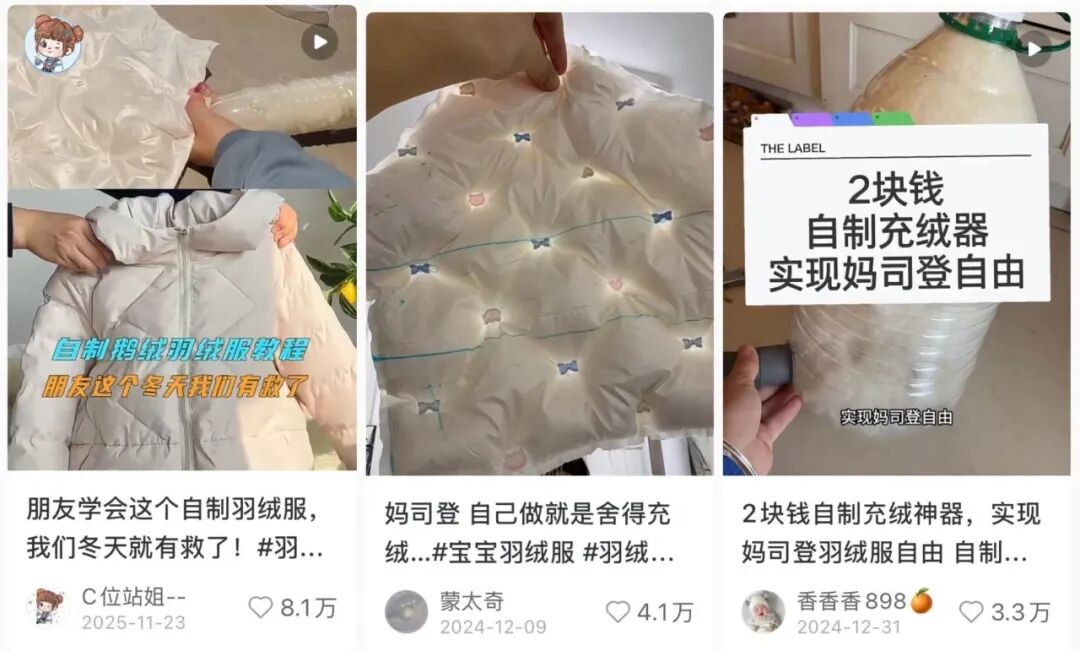 今年冬天,中国社交媒体上最热门的羽绒服话题,不是哪个品牌又推出了新款,而是如何以最低成本自制羽绒服。
