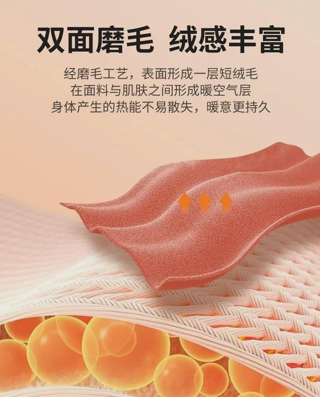穿在身上能快速聚热,贴近皮肤是柔软丝滑的触感,无需担心面料刺痒、不平整等问题。