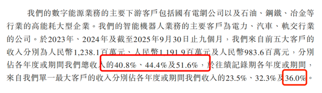 更为严峻的是风险敞口的扩大。科大智能患有“大客户依赖症”,2025年前三季度,前五大客户贡献了超五成收入,单一最大客户占比更是高达36.0%,主要集中于国有电网及大型工业企业。这种高度集中的业务结构,意味着一旦核心客户调整策略,公司将面临剧烈的业绩震荡。