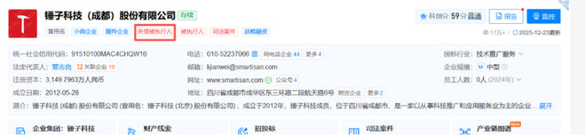 据天眼查信息显示,目前锤子科技(成都)股份有限公司仍背负多项法律风险,包括2条失信被执行人信息、1条被执行人信息、2条限制高消费信息,此前已被法院判令履行的执行标的合计超过2142万元,涉及多起借款纠纷及合同纠纷。其中,2025年6月紫辉创投CEO郑刚与锤子科技的1500万借款诉讼二审维持原判,锤子科技需偿还借款本金及利息并承担诉讼费用,成为其债务问题的重要组成部分。