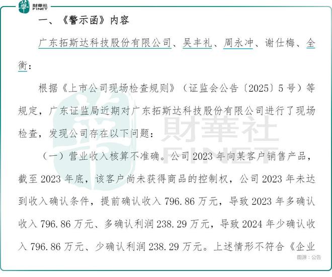 据悉,2025年12月30日,拓斯达发布公告,当日,公司及相关人员收到中国证监会广东监管局出具的警示函。