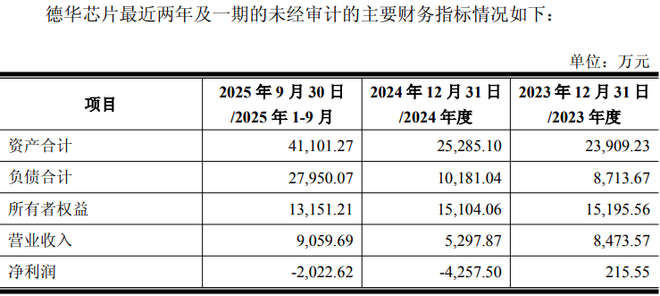 财务数据显示,德华芯片近期业绩表现不佳。 公司2023年、2024年和2025年1-9月的营收分别为8473.57万元、5297.87万元、9059.69万元;净利润分别为215.55万元、-4257.50万元、-2022.62万元。