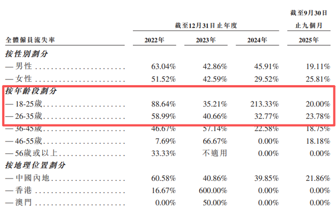 更值得警惕的是人才流失问题,2022年至2024年公司全体员工流失率分别高达63.04%、42.86%、45.91%,其中2024年18-25岁员工流失率更是达到213.33%,26-35岁核心员工流失率也维持在32.77%的高位,较高的流失率一定程度上冲击技术研发连续性与项目交付能力。