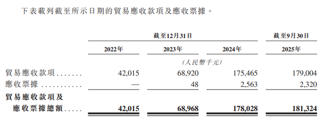 现金流层面的压力更为突出,2022年至2025年前三季度,经营活动现金流净额持续净流出,分别为-7914.3万元、-7296.3万元、-1759.2万元、-2137.3万元,累计失血超1.9亿元。造成这一状况与应收账款周转效率恶化密切相关,公司贸易应收款项及应收票据总额从2022年末的4201.5万元攀升至2025年三季度末的1.81亿元,周转天数则从99天骤增至379天,回款周期大幅拉长不仅加剧资金链紧张,也提升了坏账风险。