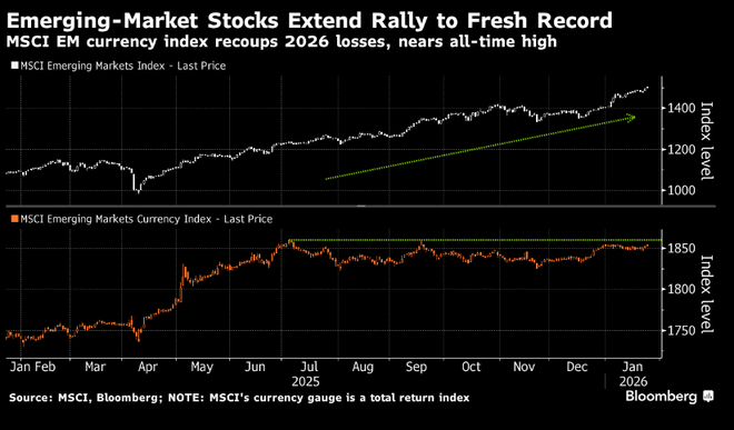 围绕格陵兰的争端 —— 即便目前暂时缓和 —— 也重新引发外界对“美国例外论”和美元角色的质疑,促使从欧洲到印度的资金分散配置、减少对美国国债的依赖。这一资金流为新兴市场上涨再添动力;这轮行情本就受益于全球增长稳健、AI支出热潮、拉美政治格局变化,以及许多发展中经济体在财政与货币政策上回归更“正统”的路线。