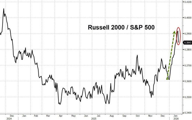 高盛交易台指出,"周五叙事出现显著变化",罗素2000指数今年首次跑输标普500,结束了创纪录的14天连涨。