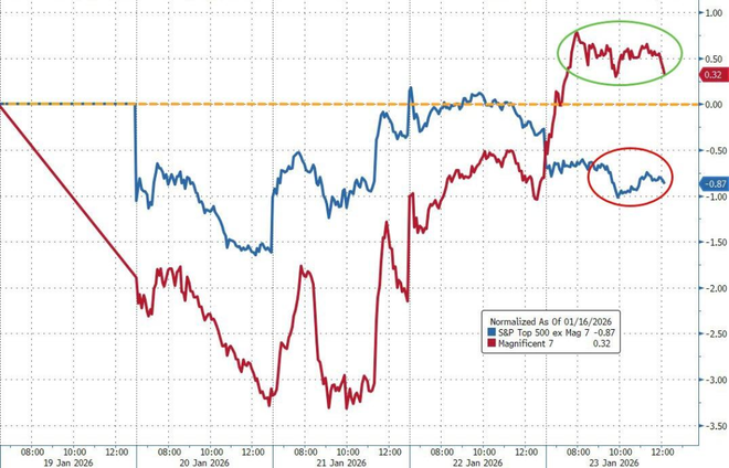 从整周来看,Mag7股票收涨,而标普493成分股下跌。