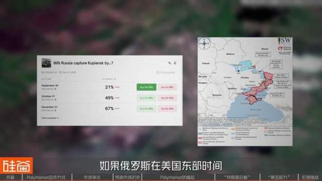 当然,更具争议的,则是对俄乌战争的赌注,在Polymarket上,有很多关于某座城市,是否会在某个日期前被乌克兰收复,或者是俄罗斯是否会在某个日期前攻占哪里的赌注:它的判断条件就是根据ISW地图,如果俄罗斯在美国东部时间2025年8月31日晚上11:59之前,占领库皮扬斯克的一个火车站,则该赌注将判定为“Yes”。