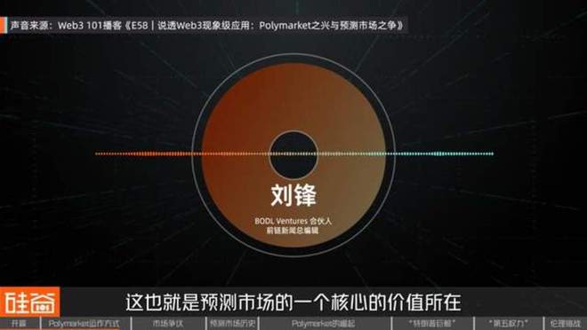 刘锋 BODL Ventures合伙人 前链新闻总编辑: 预测市场的核心价值就是,越来越多的人会把它认为是一个非常有效的信息金融市场。因为大家会觉得:在传统的信息市场里面,声量大的人、或者是传统媒体沟通的渠道,可能会存在大量的专家、政客在传达信息。而越来越多的人,他们会把预测市场作为更进一步的信息市场,大家拿钱来赌真实的、可信的信息,前提是在有效市场理论假设下,有效的市场会用金钱给赌出来,所以很多人会把预测市场视为未来有价值的一个信息中枢。