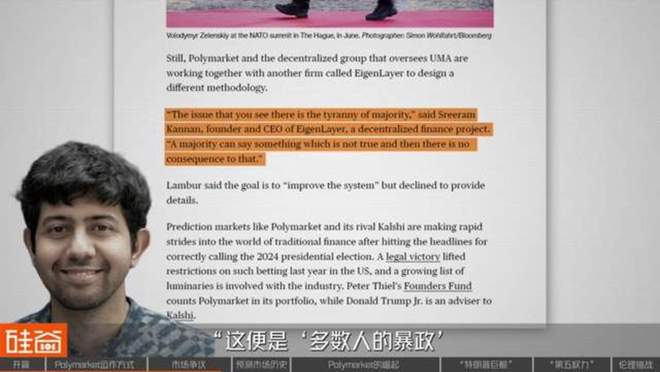 所以针对Polymarket的UMA机制,EigenLayer的创始人Sreeram Kannan,就曾经对彭博表示:“这便是‘多数人的暴政’,多数人可以说一些不真实的话,而不会有任何后果。”他的观点,其实暴露了Polymarket在追求去中心化的同时,其事实裁决机制存在脆弱性。