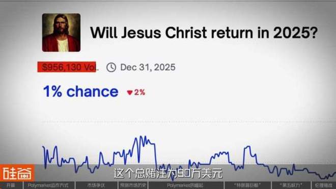 2025年耶稣会重新降临人世?在预测平台Polymarket上,这个赌注总额90万美元的问题,竟仍有1%的人押注“会”。