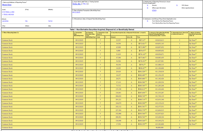 根据周一披露的美国证券交易委员会(SEC)文件,马斯克于上周进行了一系列交易,以每股371至396美元的价格购入了约257万股特斯拉股票,总价值约10亿美元。这是自2020年2月他以约1000万美元购入股票以来,首次在公开市场进行大规模增持。