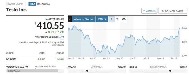 从资本市场表现来看,特斯拉股价在2025年迄今下跌了2%,而同期标准普尔500指数则上涨了12%,显示出其股价表现已落后于整体市场。