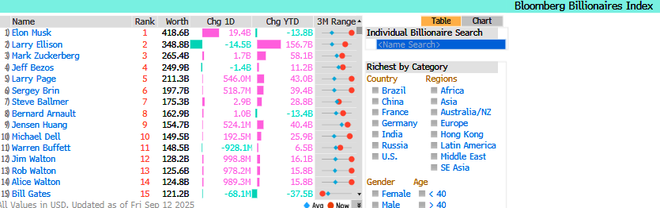 根据媒体的亿万富翁指数显示,目前马斯克是全球首富,净资产约为 4190 亿美元。