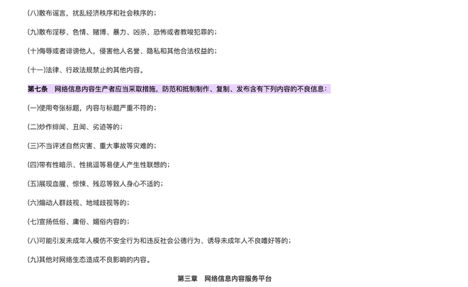 依据2020年施行的《网络信息内容生态治理规定》:其第7条禁止炒作绯闻、丑闻、劣迹等不良信息;第10条要求平台履行信息内容主体责任,主动防范、抵制第7条所列不良信息;第8、9条则要求建立完善的内容生态治理机制(注册、审核、评论、辟谣等),导向"积极健康、向上向善"。