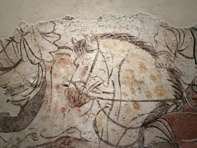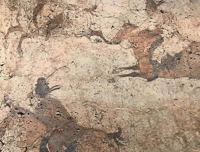 面对眼前这残存的两骑,想到那些未能保存的画面,想到考古队当年的无奈,到底有些痛心。一千三百年前,画师在甬道壁上落笔,画下那场激烈的比赛,画下墓主人生中最光彩的一瞬。一千三百年后,这些画作在盗扰与农田水浸中残存,最终被揭取、修复,而作残品陈列,就居然如此光灿如夺目。