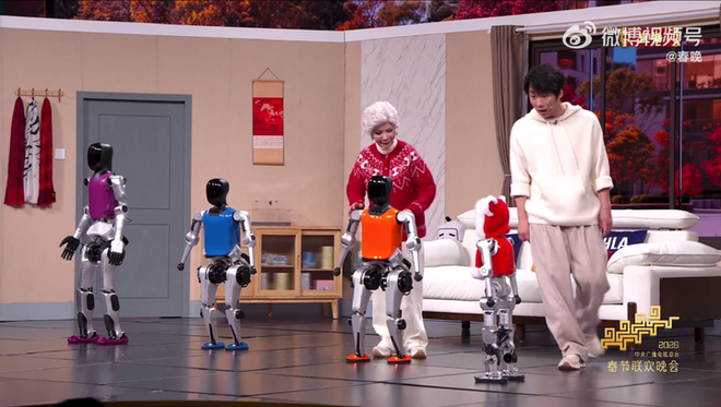 更重要的是,根据官方介绍,它并不是完全按提前编好的程序一步步执行,而是能自己观察周围、思考判断,再完成整个任务。这意味着它在杂乱的真实环境里,也能独立应对,做出精细的操作。在与演员沈腾、马丽的互动中,它的反应也比较自然,能及时察觉周围的变化并做出回应。