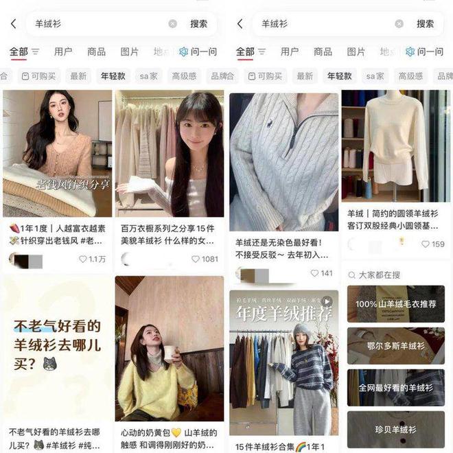 然而消费市场的风向,总在悄然流转。正如社交媒体上那句流行的自省:35岁左右,人们对于材质的认知会迎来一次彻底觉醒。当年轻人走出消费懵懂期,从追求款式转向看重质感,羊绒便成了热门选择之一。