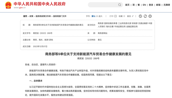 2024年2月,商务部等9单位联合印发《关于支持新能源汽车贸易合作健康发展的意见》(下称《意见》),这份文件以符合世贸规则为原则,为新能源汽车企业出海提供了系统性指导。2025年9月,商务部、工业和信息化部、海关总署、市场监管总局决定对纯电动乘用车实施出口许可证管理。这项政策,旨在从源头保障出口产品的质量和售后服务水平。