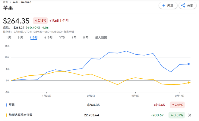 “硬件防御”对冲AI焦虑,苹果与纳指相关性创20年新低