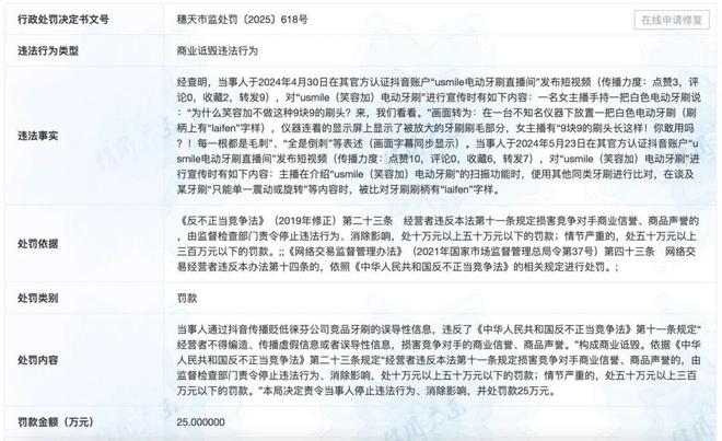 这起被处以25万元罚款的事件,折射出的是国产电动牙刷品牌在行业转型期的集体焦虑。