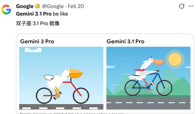 相比去年11月发布的 Gemini 3 Pro,这次版本号只增加了"0.1",但从官方披露的测试结果来看,3.1Pro在多模态生成和深度推理上跃升了一大步。