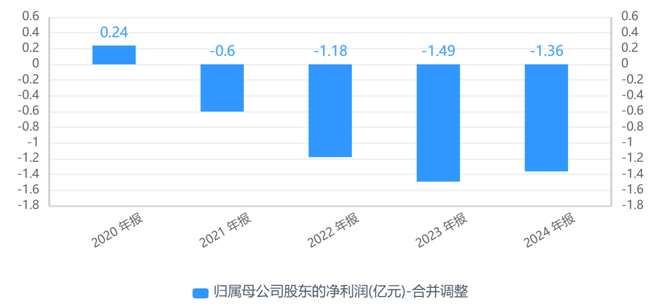 回顾近年业绩,2021年至2024年,*ST椰岛分别亏损0.97亿元、1.53亿元、1.55亿元、1.36亿元,四年合计亏损5.41亿元。据悉,公司的营收大幅下滑主要是因为酒类产品的收入减少。