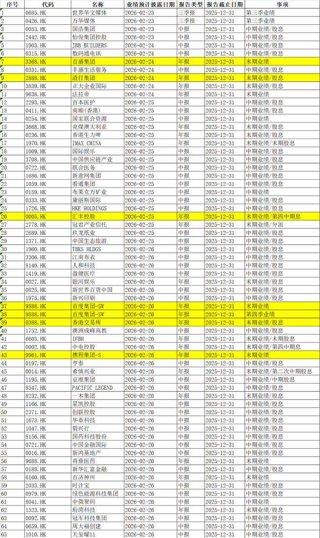 A股港股方面,百胜集团、渣打银行、携程等公司发布财报。